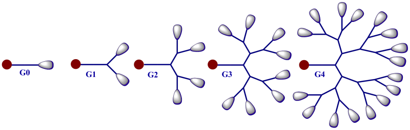 Poly(amidoamine) Dendrimers (PAMAM Dendrimers) are branched synthetic polymers that were first discovered by Dr. Donald A. Tomalia in the late 1970s [1], with excellent control over size and highly mono-disperse materials. In the last 20 years, the interest of the scientific and biotechnology communities has grown exponentially. The number of manuscripts published has increased from a single publication in 1990 to 625 publications in 2011, with patent applications filed with the U.S. Patent Office following a similar trend. This trend reflects an increasing belief that dendrimers have considerable potential for applications across a range of technologies, including nanomedicine, contrast imaging delivery, and nucleic acid delivery [2-4]. Despite the increasing number of patent and non-patent publications, no systemic dendrimer-drug conjugates have entered clinical trials testing since its discovery. This may be due to an issue of manufacturing and controls of a dendrimer-drug conjugate. Standard dendrimer conjugation chemistry produces an average of a mixed number of species of products. For instance, when standard dendrimer conjugation chemistry occurs, a mixture of products is formed (Fig. 1). This makes it very difficult to isolate one species of product to proceed with clinical trial materials. This mixed number of species of products may be a shortcoming for systemic dendrimer-drug conjugates, which currently prevents them from reaching their full potential.